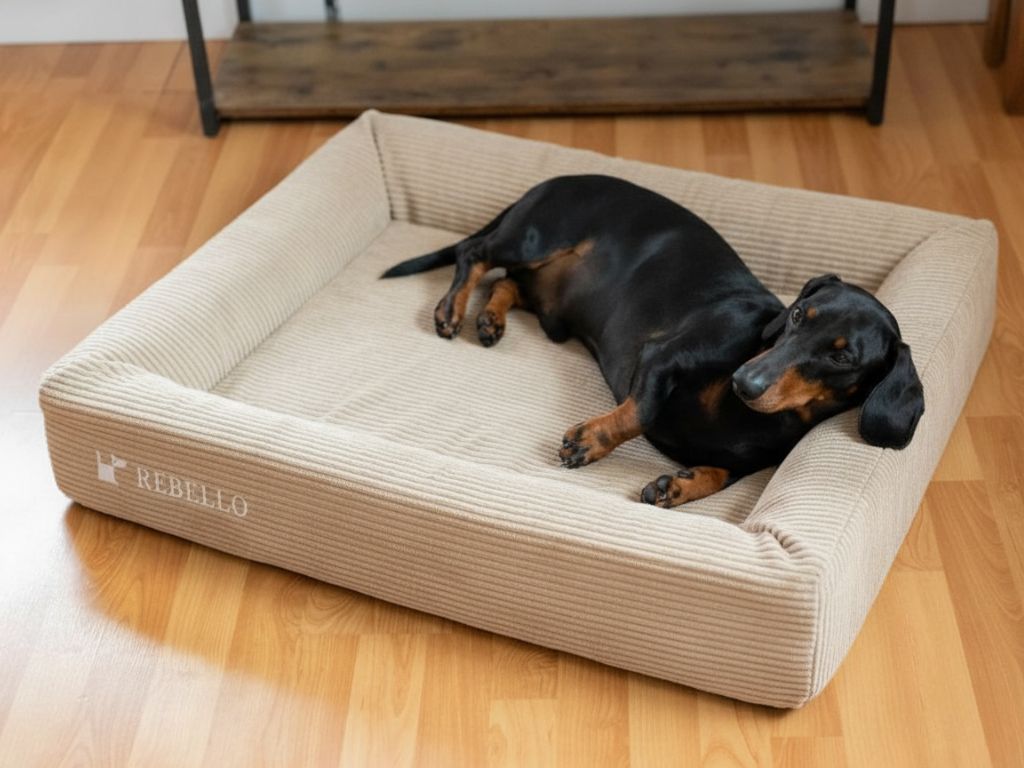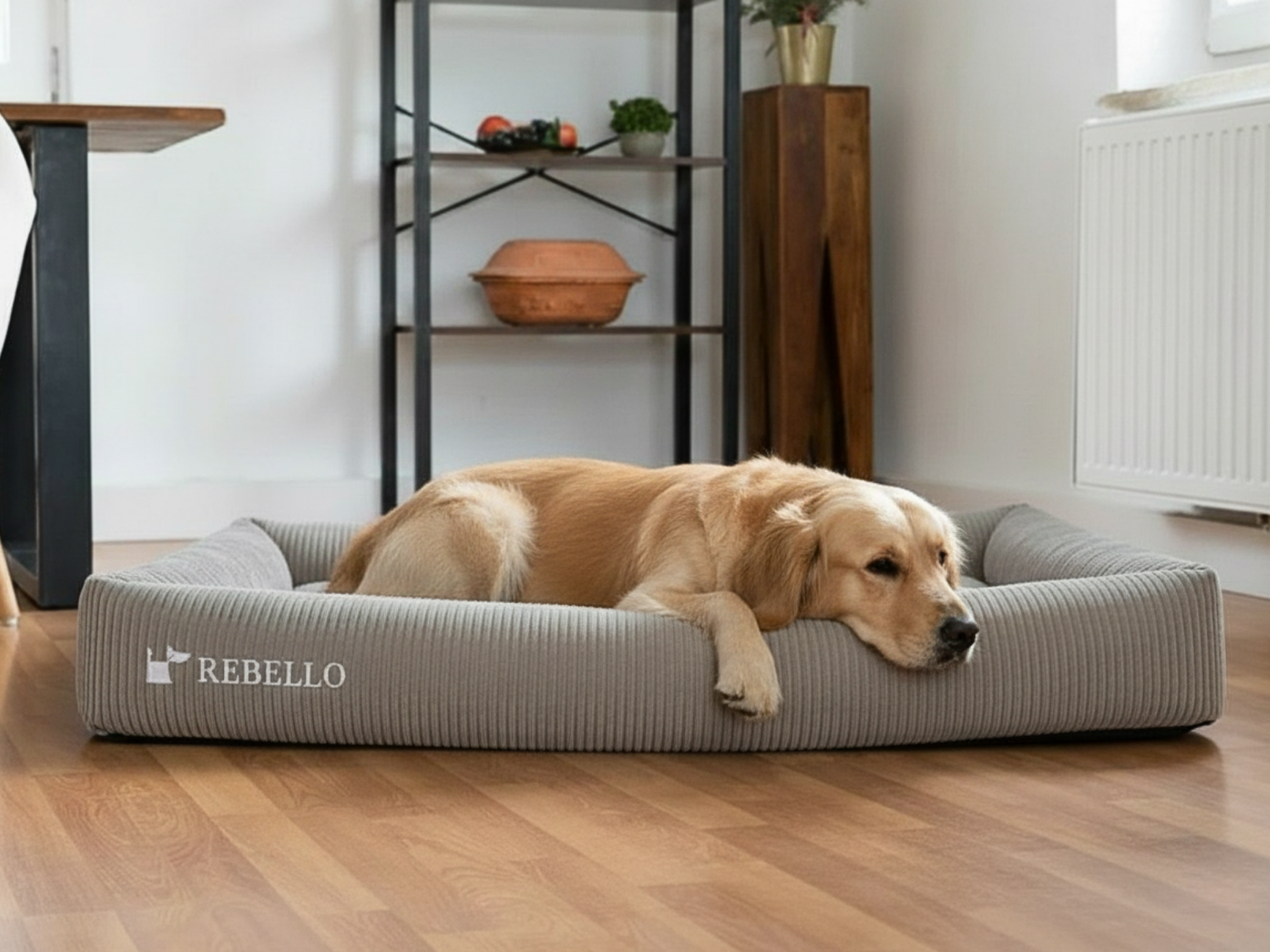 Der langlebige orthopädische Schaumstoffkern im REBELLO Hundebett EDEN passt sich dem Körper deines Hundes optimal an, entlastet Gelenke sowie Wirbelsäule und sorgt so für einen tiefen, schmerzfreien Schlaf. Ideal für ältere Hunde oder Vierbeiner mit Gelenkproblemen.